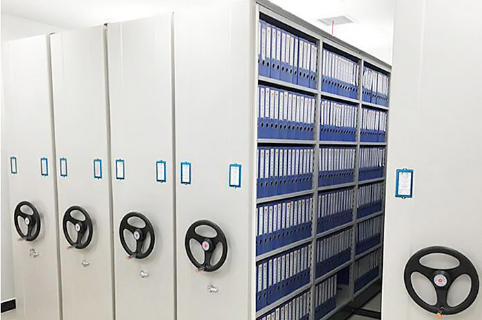 密集架按結構分類有兩種形式,半封閉式密集架和全封閉式密集架,海發(fā)HF-MJFB051號密集架就是全封閉式密集架。全封閉式密集架主體由立柱、層板、頂板、底板、節(jié)間側板、節(jié)與節(jié)之前的封板和最外側護板、列門板等組成,比半封閉式密集架多了私密性,因此主要用于存放私密性較強或較小物品的存儲。